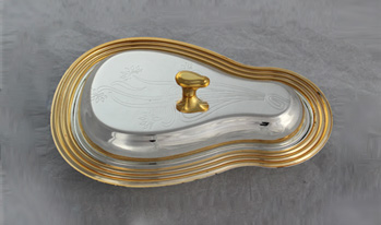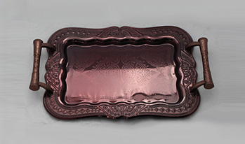 The metal trays are made of iron or stainless steel, in different thickness, with finishing of Nickel plated,Chrome plated,brass plated or Silver plated. Normally,the handle is made of Zinc alloy or plastic.